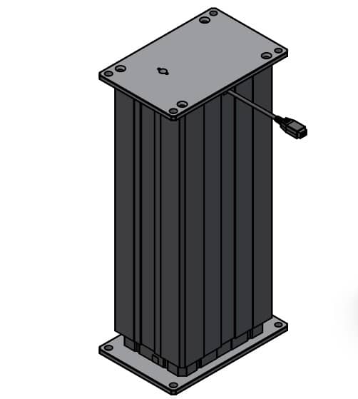 DL2-Säule für umgekehrte Montage. Programmierbare, umgedrehte Betätigung. 350mm Hub. Einbaumaße von 505mm. 2.500N