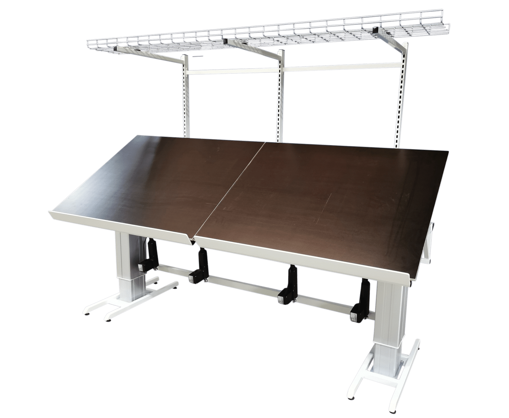 Flexibelt totalt justerbart hæve sænkebord – EOL 300-Flex. Ideelt til montage, pakning og præcis arbejde med både højde‐ og vinkeljustering.