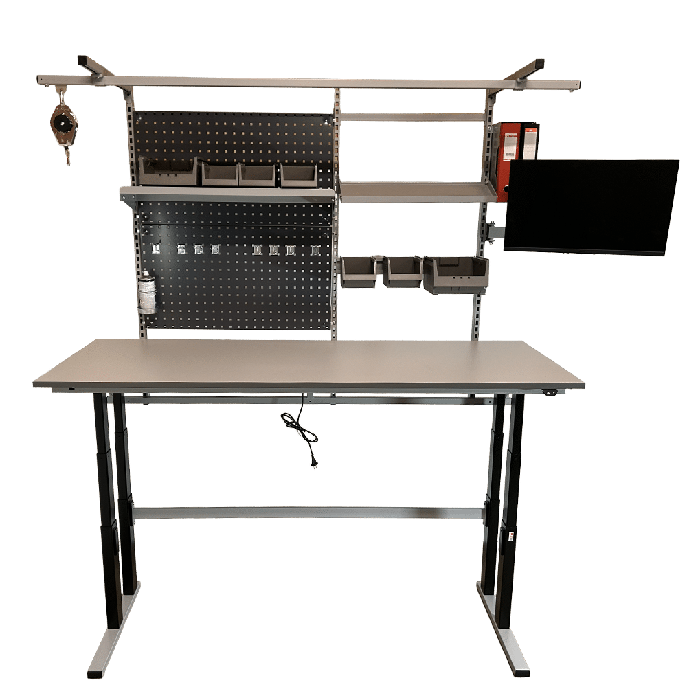 Det betyder, at overbygningen giver maksimal mulighed for organisering og udbygning over bordet (ophæng, hylder og opbevaring), så arbejdsstationen kan indrettes mere struktureret.