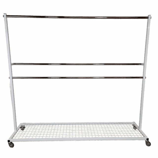 Dette bøjlestativ med 3 bøjlestænger er designet til virksomheder med behov for stort ophængningsareal, høj fleksibilitet og mobilitet.