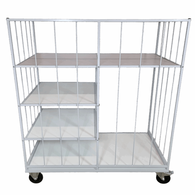 De store hjul gør lagerreolen mobil, så den nemt kan flyttes rundt i produktion, lager eller værksted. Det giver en fleksibel løsning, hvor tunge komponenter kan transporteres sikkert og organiseret – uden at optage unødvendig gulvplads.