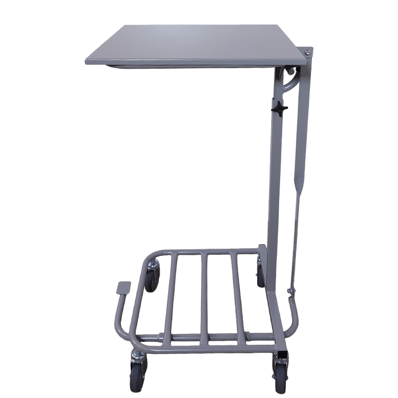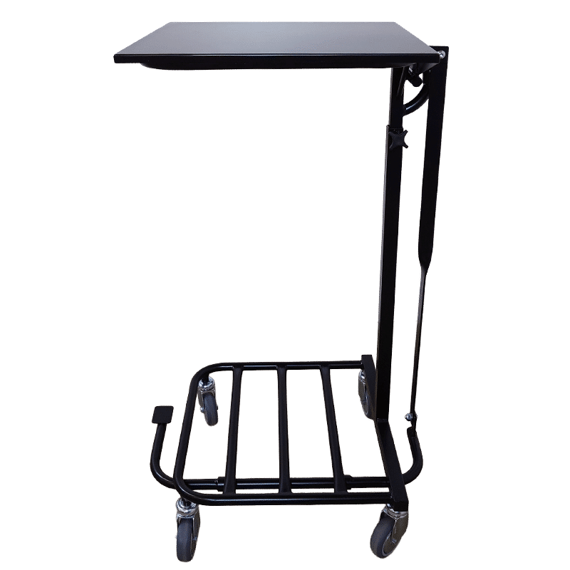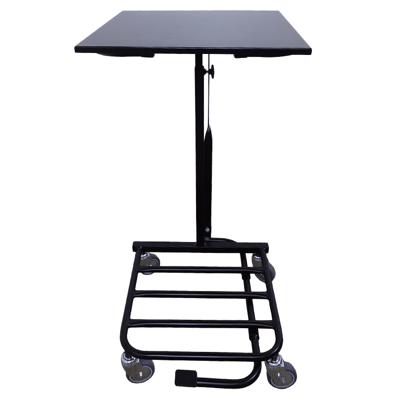 Stativet kombinerer solid stålkonstruktion med kontaktfri pedalbetjening og kan leveres i valgfri RAL-farve eller som specialversion med specialmål – så det passer perfekt ind i jeres arbejdsflow.